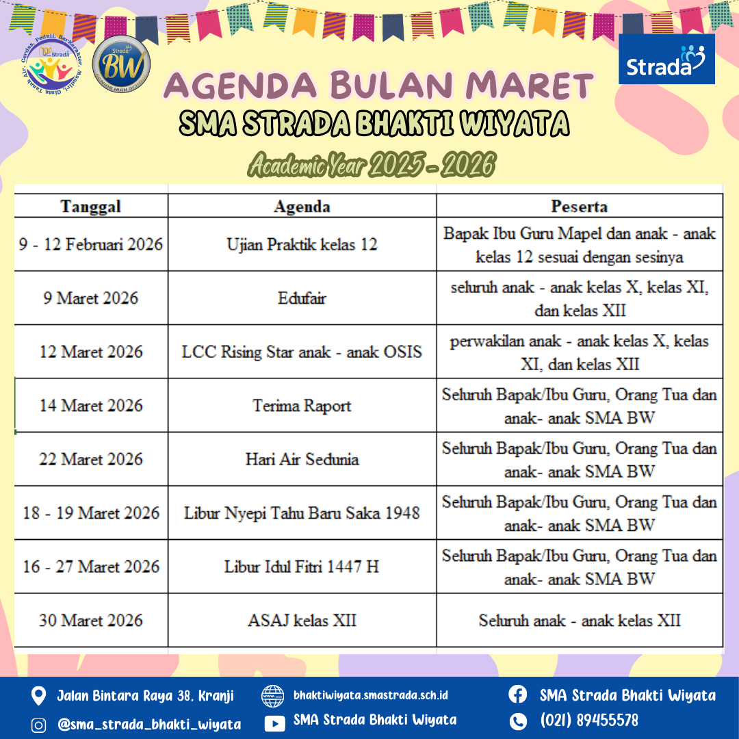 Yuk, kita liat agenda SMA Strada Bhakti Wiyata di bulan Maret: